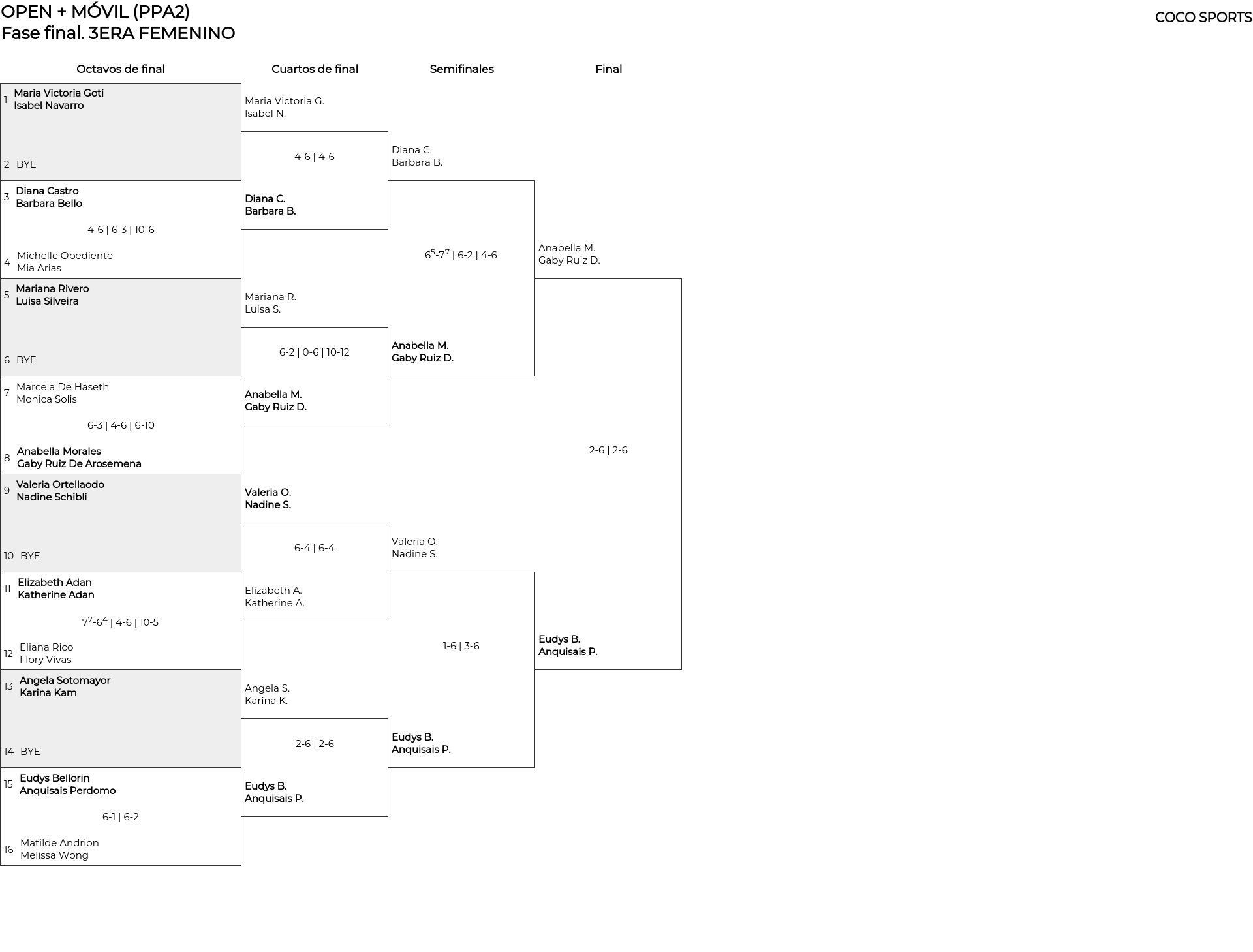 Cuadro principal 3ERA FEMENINO