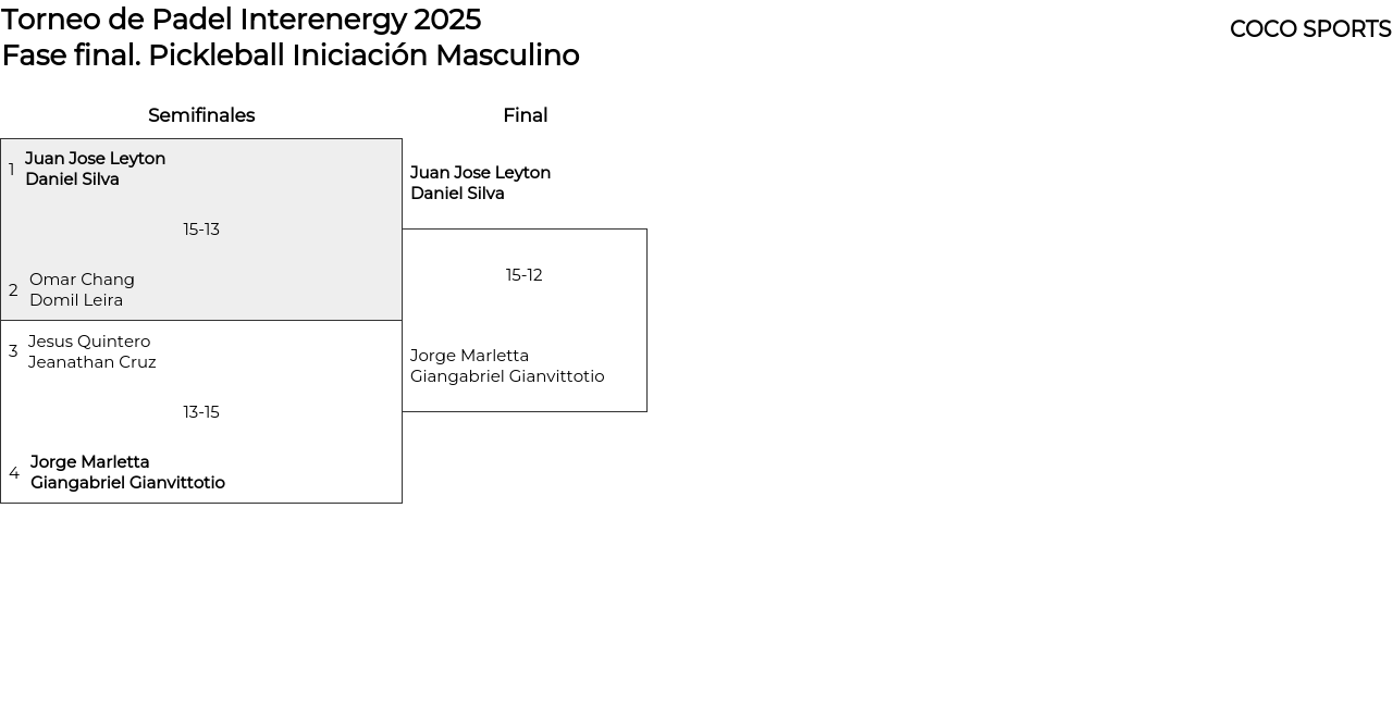 Cuadro principal Pickleball Iniciación Masculino