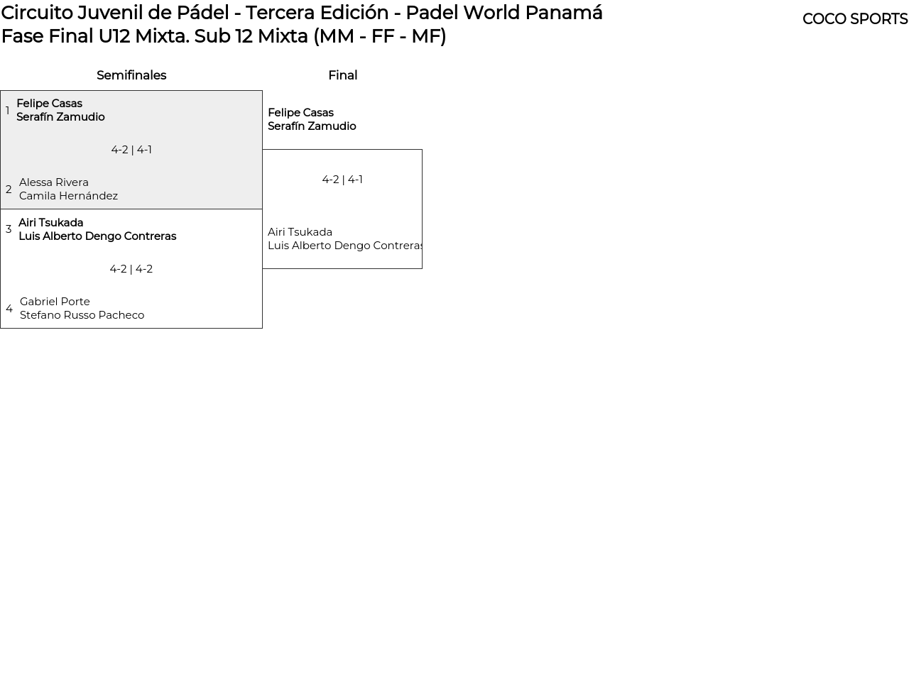 Cuadro principal Sub 12 Mixta (MM - FF - MF)