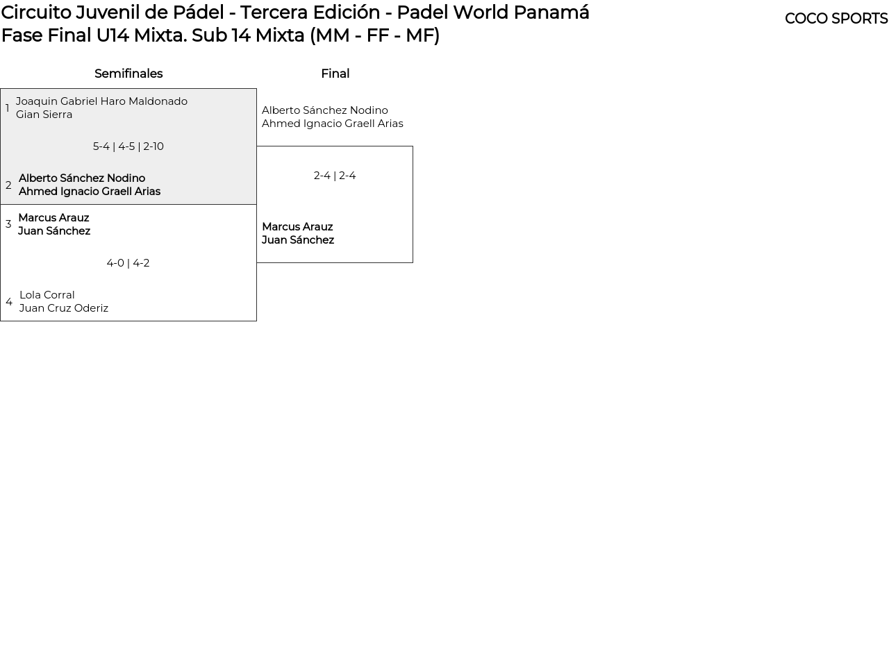 Cuadro principal Sub 14 Mixta (MM - FF - MF)