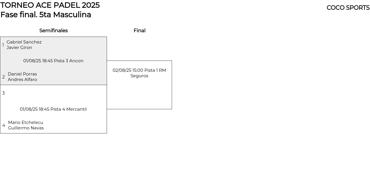 5ta Masculina . Desde 02/08/2025 00:00 hasta 02/08/2025 18:00