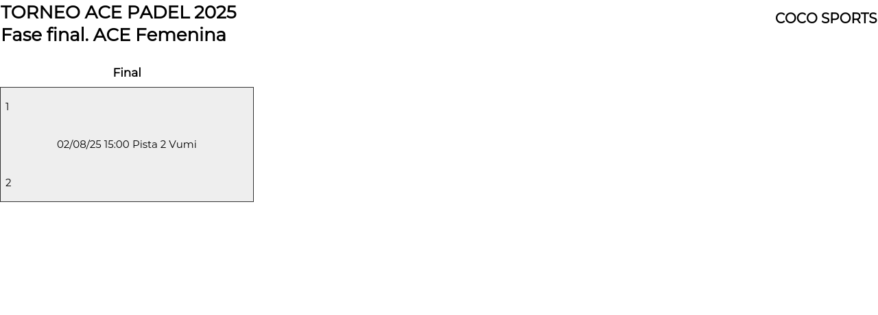 ACE Femenina . Desde 02/08/2025 00:00 hasta 02/08/2025 18:00
