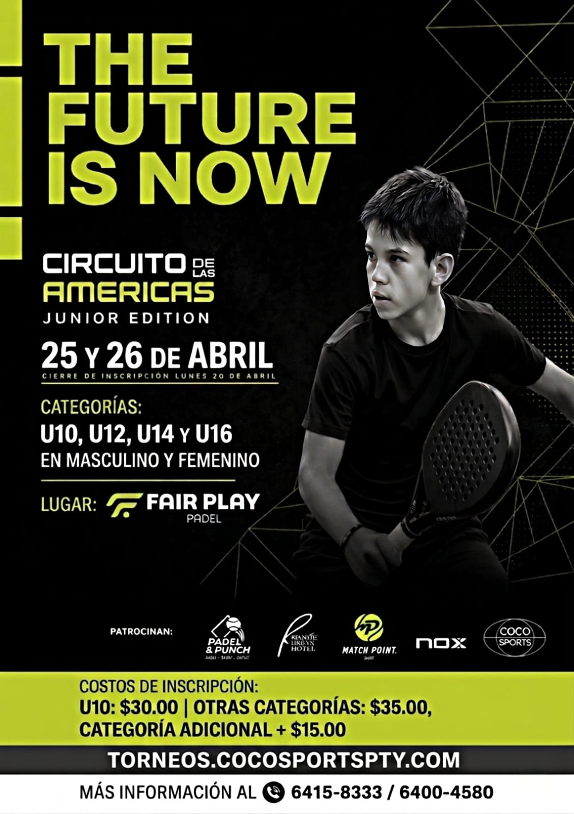 U12, U14, Y U16 $35.00 por jugador. U10 $30.00 por jugador.